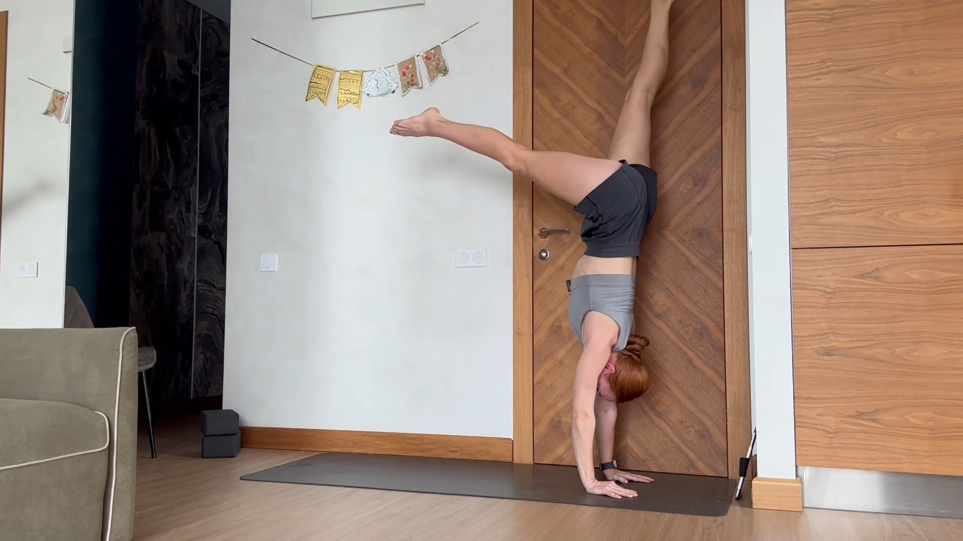 Акцентная практика на освоение и развитие выхода через мах-толчок в стойку на руках. Также включает блок на развитие выносливости и координации с чередованием пистолетика и выхода в стойку.